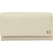 Вместительный женский кошелек на полную купюру Fabretti выполнен из натуральной зернистой кожи в бежевом оттенке и сочетает классический дизайн с функциональностью.