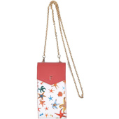 Аксессуар выполнен из натуральной гладкой кожи. Основное отделение закрывается на клапан с магнитной кнопкой и вмещает большинство моделей смартфонов. На тыльной стороне предусмотрен открытый карман быстрого доступа. На лицевой стороне аксессуар декорирован шильдом с монограммой бренда. Съемная цепочка позволяет носить аксессуар в руках или на плече, когда это необходимо. Фурнитура под золото гармонично дополняет общий дизайн изделия. -