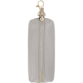 Ключница женская Fabretti из натуральной кожи серого цвета (Q250013D-3) Удобная компактная ключница Fabretti выполнена из натуральной зернистой кожи. Лаконичный дизайн, серый оттенок и фурнитура под золото превращают модель в модный аксессуар, который защитит вещи от сколов и подчеркнёт статус. Внутри — 1 отделение для ключей, а также удобный металлический держатель на цепочке. На внешней стороне предусмотрен карабин.