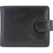 Портмоне мужское Pellecon из натуральной кожи чёрного цвета (105-303-1) Натуральная кожа. Размер (ШхВ): 10,5×8,5 см. Закрывается на кнопку. Внутри: два отделения для купюр, монетник с кнопкой, четыре кармашка для пластиковых карт (один с прозрачным кармашком), прозрачный кармашек для фотографии, два потайных кармана.