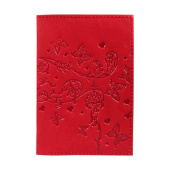 Обложка для паспорта из натуральной кожи и прозрачных внутренних клапанов из качественного ПВХ с прорезями для прав или кредитных карточек. Кожа красного цвета высокогого качества, приятная на ощупь. На обложке глубоким тиснением нанесен красивый, довольно крупный рисунок из растительного элемента, при этом рисунок не закрывает все участки обложки, давая оценить красоту натуральной кожи. Надписей на обложке нет, делая ее универсальной.