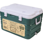 Термоконтейнер сохранит свежесть овощей и мяса и прохладу напитков в жаркий летний день, а также послужит походным холодильником на рыбалке и поможет довести улов до дома даже в долгой поездке. Двойная стенка из прочного пластика и прослойка из пенополиуретана позволяют сохранять холод до 166 часов. Наши контейнеры имеют жесткую, надежную конструкцию и ударопрочный корпус, так что их можно использовать как стол и даже сидеть на них. Герметичная конструкция защитит от протечек и посторонних запахов, ее легко мыть после использования. Контейнер оборудован прочными ручками с двух сторон, крепкими замками, фиксирующим ремнем, который надежно держит крышку при открытии. Встроенный слив решит проблему избытка конденсата. В комплекте — 2 емкости для льда на 400 мл, размещенные на внутренней стороне крышки, которые используется как аккумуляторы холода. Вес контейнера — 4.9 кг, объем холодильного отсека — 60 л. Гарантия — 1 год. Размер — 61×42×31 см. Цвет — зеленый. Материал — пластик.