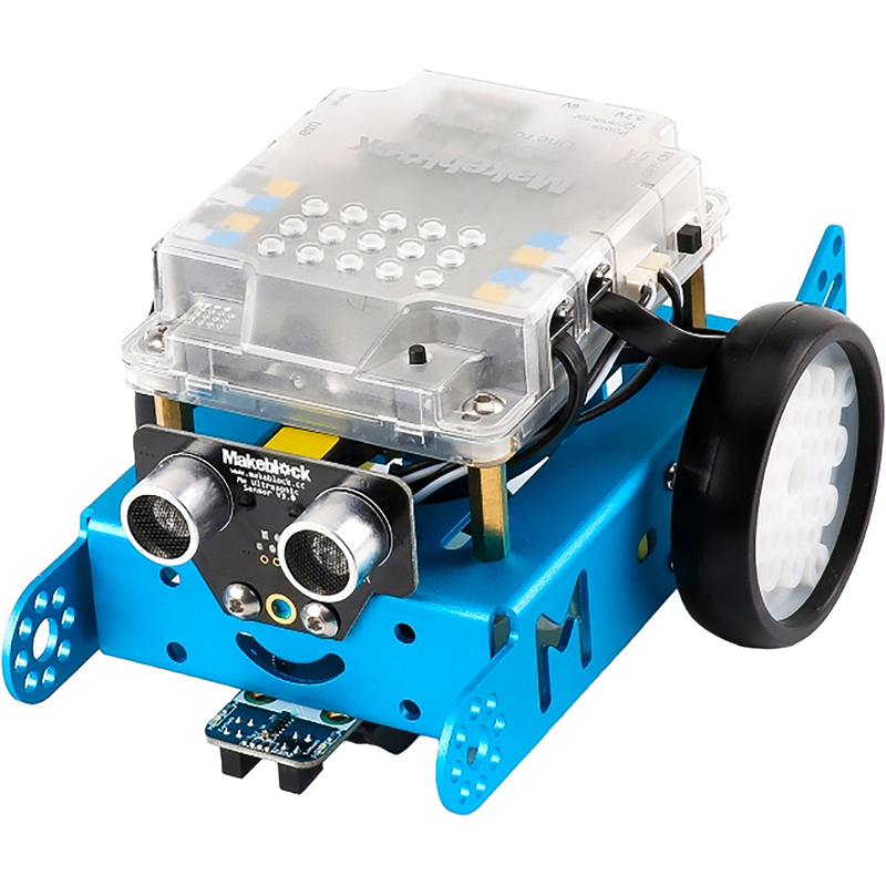 Набор робототехнический Makeblock mBot (Bluetooth version) от 6 лет (P1050017-20) Набор робототехнический Makeblock mBot (Bluetooth version) — это обучающий набор, который подойдёт как для начинающих робототехников, так и для тех, кто уже познакомился с миром роботов. Лёгкий в сборке робот работает в паре с графической программой mBlock, основанной на Scratch, что позволяет сразу окунуться в мир программирования, электроники и робототехники. Исходное заводское ПО позволяет роботу объезжать препятствия, двигаться по линии. Роботом можно управлять в ручном режиме через планшет или смартфон, предусмотрена возможность настройки индивидуальных интерфейсов управления. Интуитивно понятная среда программирования mBlock обеспечивает эффективное обучение графическому программированию. Комплектация: 6P6C RJ25 кабель — 2 шт., Bluetooth-модуль, USB-кабель, ИК-пульт управления, гайка M3 — 8 шт., датчик линии, держатель батареи АА, колесо — 2 шт., латунные шпильки M4×25 — 4 шт., липучка — 2 шт., опора мини-колесо, отвёртка, саморез M2.2×9 — 4 шт., ультразвуковой датчик, шасси, шины — 2 шт., рисунок для тестирования и следования по линии, пластиковый корпус для микроконтроллера, контроллер mCore (на базе Arduino UNO), двигатель постоянного тока — 2 шт., винты с потайной головкой M3×25 — 6 шт., винты с головкой M4×8 — 15 шт. Внешний вид и/или характеристики товара могут быть изменены производителем в соответствии с производственным процессом.