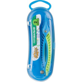 Готовальня Комус Класс (корпус синий, зеленый, S84002). Набор для черчения включает циркуль (длина 120 мм) и запасной грифель. Упаковка: пластиковый пенал с европодвесом. Произведено в Китае. В транспортной упаковке 288 наборов. В рамках ребрендинга товар переводится с ТМ № 1School на ТМ Комус Класс с сохранением всех характеристик.