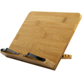 Подставка для книг Комус Класс (Attache) бамбуковая коричневая Подставка выполнена из экологичного материала — бамбука. Она способна удержать даже увесистые книги или гаджеты. Регулируемый наклон подставки позволяет комфортно разместить книгу, журнал или планшет на рабочем месте, обеспечивая удобство при чтении и работе с текстом, а также при просмотре видео. Держатели страниц, фиксирующие книгу снизу на выбранной странице, также оснащены насадками, которые защищают поверхность от царапин. Размер подставки — 28×20 см, вес — 689 г. В рамках ребрендинга производится перевод данного артикула с ТМ № 1 School на ТМ Комус Класс с сохранением всех потребительских характеристик товара. На переходный период допускается поставка данной продукции в двух вариантах дизайна.