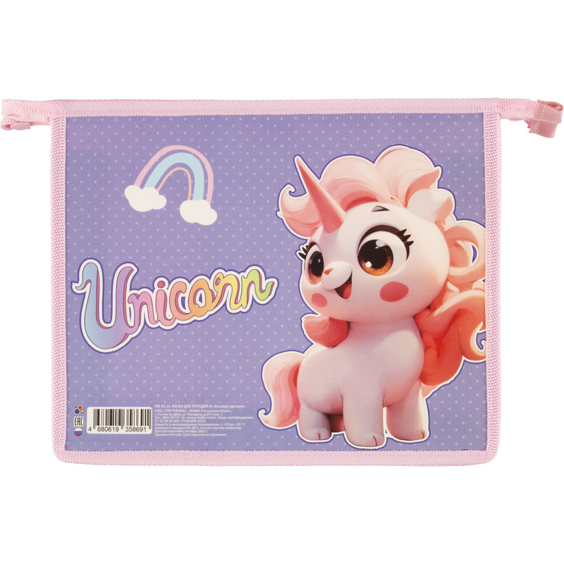 Папка для тетрадей Весёлый единорог А5 с 1 отделением на молнии