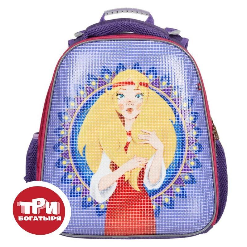 Ранец Комус Три богатыря Аленушка Basic анатомический фиолетовый пайетки с двумя отделениями