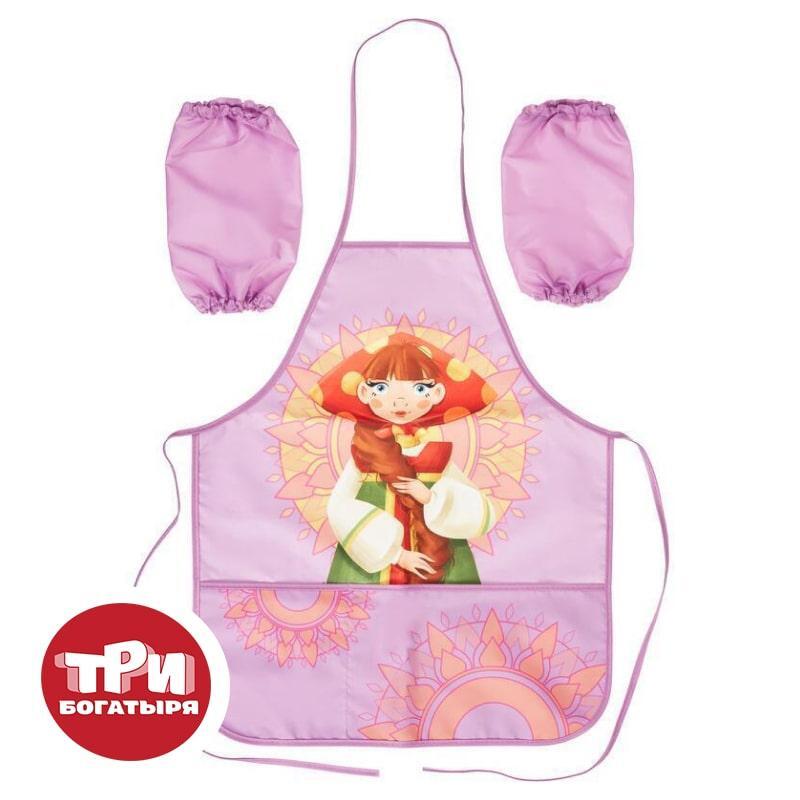 Фартук для труда Комус Три богатыря Любава розовый с нарукавниками