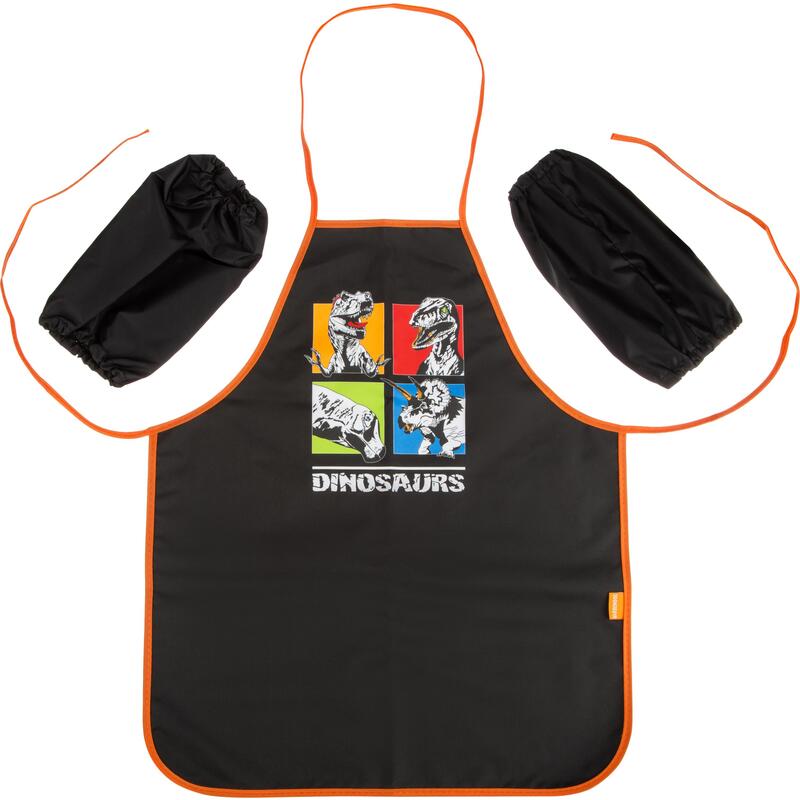 Фартук для труда Комус Класс (№1 School) Dinosaurs черный с нарукавниками