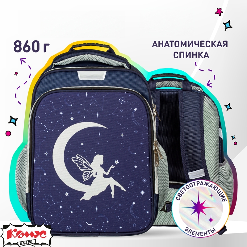 Ранец Комус Класс Straight Месяц анатомический синий с двумя отделениями