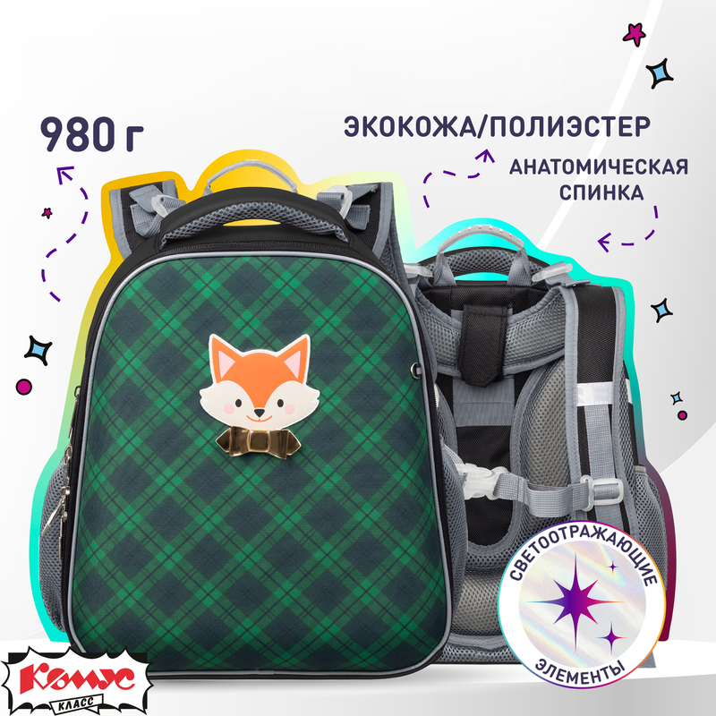 Ранец Комус Класс Basic Лисичка зеленый с двумя отделениями