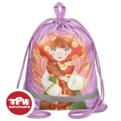 Мешок для обуви Комус Три богатыря имеет одно отделение, карман и светоотражающие элементы. Материал — полиэстер. Размер: 360×470 мм. Дизайн: героиня мультфильма «Три богатыря» — Любава.