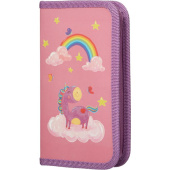 Пенал односекционный для девочек Комус Класс ’Волшебный Единорог’ без наполнения. Вместительное отделение для канцелярских принадлежностей застегивается на молнию. Материал — картон с покрытием soft touch. Размер — 190×110 мм.