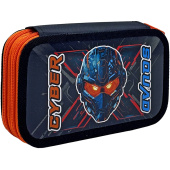 Пенал двухсекционный, большой, тканевый торец. Дизайн КИБЕР БОТ. Для мальчика. Пенал в индивидуальной упаковке в пакете с еврподвесом