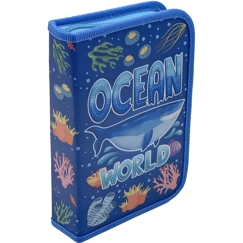 Пенал односекционный с двумя откидными планками . Дизайн ПОДВОДНЫЙ МИР. Унисекс. Пенал в индивидуальной упаковке пакете с еврподвесом