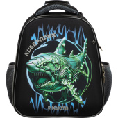 Ранец Комус Класс Basic акула анатомический чёрный с двумя отделениями. Школьный ранец Комус Класс Basic с принтом акулы разработан специально для мальчиков школьного возраста. Анатомическая спинка обеспечивает правильное распределение нагрузки на спину ребёнка благодаря особой конструкции и мягким подушечкам. Вместительный ранец имеет два основных отделения для удобной организации школьных принадлежностей. Четыре функциональных кармана позволяют разместить необходимые мелочи и канцелярские принадлежности в быстром доступе. Мягкие регулируемые лямки с воздухопроницаемой подкладкой адаптируются под рост ребёнка и обеспечивают комфортное ношение. Усиленное полиэстером дно с защитными ножками предохраняет содержимое от намокания и механических повреждений. Светоотражающие элементы расположены на передней части и лямках, что делает ребёнка заметным в тёмное время суток. Объём школьного рюкзака составляет 16 литров при весе всего 980 граммов, что оптимально для школьника. Габаритные размеры (280×150×360 мм) позволяют вместить все необходимые учебники и тетради. Чёрный цвет с оригинальным принтом акулы придаёт ранцу стильный внешний вид. Прочный водоотталкивающий полиэстер обеспечивает длительный срок службы и защиту содержимого от осадков.