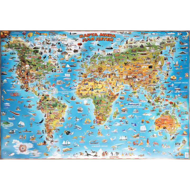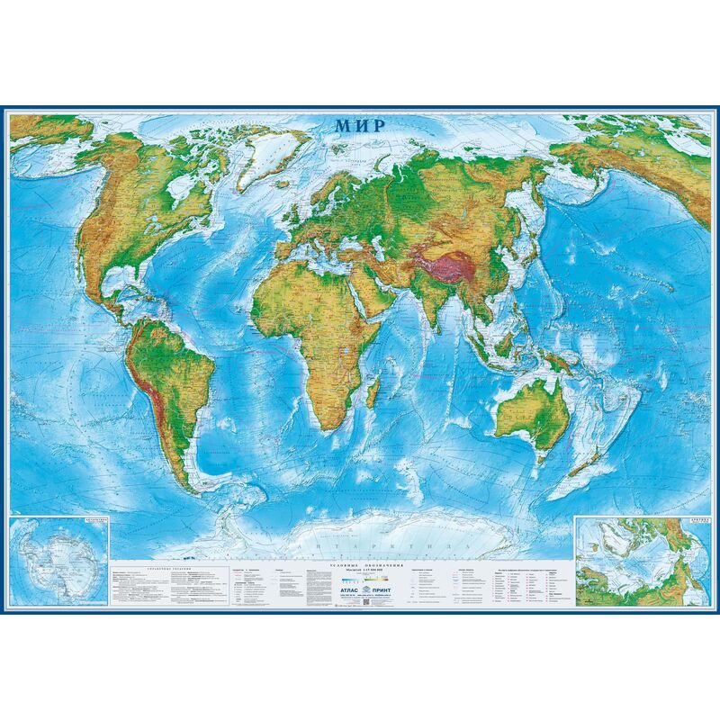 Карта мира политико-физическая 1:17 000 000 настенная 202x143 см с ламинацией