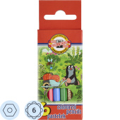Карандаши цветные Koh-i-Noor Крот 6 карандашей 6 цветов шестигранные (укороченные) Карандаши цветные предназначены для рисования на бумаге. Применяются в учебных заведениях и дома. Рекомендованный возраст от 3 лет. Набор содержит 6 цветов. Материал корпуса — древесина. Корпус шестигранный, диаметр: 7 мм. Длина корпуса: 85 мм. Диаметр грифеля: 3.2 мм. Карандаши заточены, особенность — укороченные. Форма корпуса обеспечивает удобство захвата. Упакованы в картонную коробку с европодвесом. Размер упаковки: 45×8x120 мм.