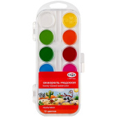 Акварельные медовые полусухие краски Гамма «Мультики», 12 цветов. Идеально подойдут для детского художественного творчества, изобразительных и оформительских работ. Краски поставляются в пластиковой упаковке. Краски хорошо размываются водой, легко наносятся на поверхность, быстро сохнут, не содержат токсичных веществ, быстро смываются с кожи, не оставляют не выводимых пятен на одежде. Безопасны при использовании по назначению. Размеры: 88×16×200 мм. Объем краски одного цвета в кювете — 3,5 куб.см.