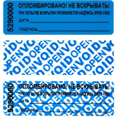 Пломбы-наклейки относятся к пломбам, применяемым для индикации несанкционированного доступа к охраняемому объекту. Особые свойства материала, применяемого для изготовления этих индикаторных пломб, не позволяют использовать их повторно после вскрытия опломбированного объекта, так как на наклейке появляется надпись «OPEN VOID» (ВСКРЫТО). Данные наклейки оставляют след на наклеиваемой поверхности. Конструктивно индикаторные пломбы представляют собой самоклеющуюся пленку с двухслойным термозащитным покрытием с маркировкой «ОПЛОМБИРОВАНО! НЕ ВСКРЫВАТЬ! ПРИ ПОПЫТКЕ ВСКРЫТИЯ ПРОЯВЛЯЕТСЯ НАДПИСЬ» и уникальным 7-значным серийным номером. Наклейки устойчивы к воздействию пресной и морской воды, масла и бытовых моющих средств.