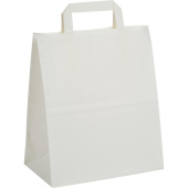 Пакет бумажный с плоскими ручками 24×14×28 см по 300 штук в упаковке. Пакет бумажный с плоскими ручками — отличное решение для услуги с собой/навынос или на доставку. Гигиеничный и безопасный продукт. Производится по международным стандартам качества. Благодаря плотной бумаге обладает высокой прочностью и отлично держит форму. Выдерживает вес до 5 кг. Пригоден для вторичной переработки.