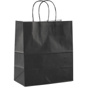 Крафт-пакет бумажный чёрный с кручёными ручками 24×14×28 см 80 г/кв.м био (300 штук в упаковке) Чёрные бумажные пакеты с кручёными ручками идеально подойдут для пищевых продуктов и других бытовых товаров. Благодаря плотной бумаге, они обладают высокой прочностью и отлично держат форму. Кручёная ручка имеет высокий порог износостойкости и пакеты используются дольше.