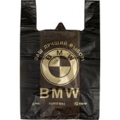 Пакет-майка из полиэтилена низкого давления (ПНД), не содержит токсических веществ. Применяются для упаковки любых товаров, в том числе и пищевых. Максимальная нагрузка — 16 кг. Длина каждого пакета с ручками — 60 см, ширина — 40 см, ширина бокового фальца — 9,5 см. В упаковке — 50 пакетов черного цвета с печатью БМВ.