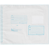 Куда-Кому ' и снабжен отрывной клейкой лентой. Толщина 70 микрон. Преимущества:- многослойный полиэтилен высокой прочности защищает вложение от влаги и механических повреждений;- непрозрачность материала исключает возможность определить содержание вложения;- возможность нанесения информации шариковой ручкой;- поверхности определенных зон пакета обеспечивают качество наносимых текстов, оттисков штемпелей и штампов и не допускают их стирания в процессе обработки и транспортировки;- индикаторы, выявляющие любую попытку несанкционированного вскрытия, в том числе прочный специальный шов с нанесенным микротекстом и специальные линии просечек с защитным текстом на клапане. Пакет предназначен для упаковки всех видов почтовых отправлений (писем, бандеролей, мелких посылок) — простых, заказных, с объявленной ценностью, с разрешенным весом вложения до 7 кг. Использование почтовых пакетов из3-слойного полиэтилена значительно сокращает время упаковки. Упакован в короба 400 штук, обандеролен по 50 штук. Срок хранения не ограничен. Для предотвращения смазывания надписей рекомендуется не использовать письменные инструменты в состав чернил которых входит масло или гель -