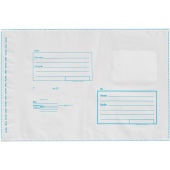 Куда-Кому ' и снабжен отрывной клейкой лентой. Толщина 70 микрон. Преимущества:- многослойный полиэтилен высокой прочности защищает вложение от влаги и механических повреждений;- непрозрачность материала исключает возможность определить содержание вложения;- возможность нанесения информации шариковой ручкой;- поверхности определенных зон пакета обеспечивают качество наносимых текстов, оттисков штемпелей и штампов и не допускают их стирания в процессе обработки и транспортировки;- индикаторы, выявляющие любую попытку несанкционированного вскрытия, в том числе прочный специальный шов с нанесенным микротекстом и специальные линии просечек с защитным текстом на клапане. Пакет предназначен для упаковки всех видов почтовых отправлений (писем, бандеролей, мелких посылок) — простых, заказных, с объявленной ценностью, с разрешенным весом вложения до 7 кг. Использование почтовых пакетов из3-х слойного полиэтилена значительно сокращает время упаковки. Упакован в короба 500 штук, обандеролен по 50 штук. Срок хранения не ограничен. Для предотвращения смазывания надписей рекомендуется не использовать письменные инструменты в состав чернил которых входит масло или гель -