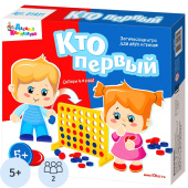 Настольная игра Кто первый. Состав игры: планшет — 1 штука, ножки — 2 штуки, фишки двух цветов (диаметр 21 миллиметр) — 42 штуки. «Кто первый» — это настольная игра-стратегия для двоих игроков.