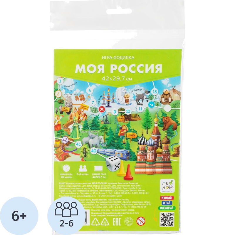 Настольная игра-ходилка «Моя Россия» знакомит детей с культурой и географией страны. Игровое поле формата А5 размером 29.7×42 см оформлено в реалистичном стиле и сопровождается фишками, что позволяет сразу приступить к игре.