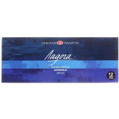 В набор входят следующие цвета: белила титановые, лимонная, желтая средняя, охра светлая, красная, розовая темная, зеленая средняя, голубая ФЦ, ультрамарин, умбра жженая, сиена натуральная, черная или сажа газовая. -