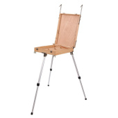 Облегченная модель этюдника с алюминиевыми ножками для работы в студии или на пленэре. Ящик для хранения художественных материалов, палитра в комплекте. Может быть трансформирован в настольную модель. Компактный, снабжен ручкой для переноса.