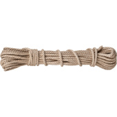 Верёвка джутовая кручёная (6 мм, 20 м). Верёвка джутовая используется в строительстве, а также для поднятия и опускания грузов при строительных работах. Применяется в качестве отделочного материала при постройке бревенчатых сооружений. Верёвка может использоваться и для хозяйственных нужд, а также для упаковки продукции, плетения макраме, для производства ковровых покрытий, мебели и элементов декора.